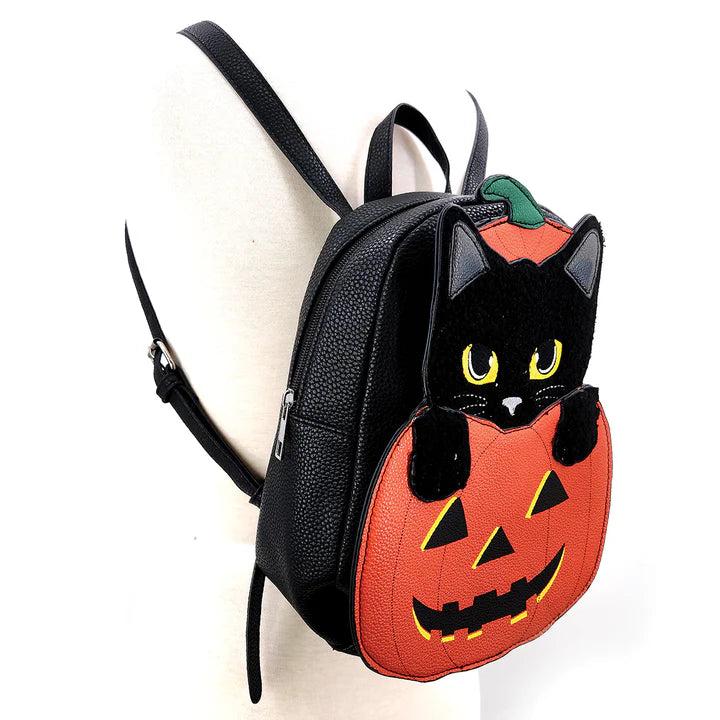 Furry Black Cat in Pumpkin Mini Backpack in Vinyl