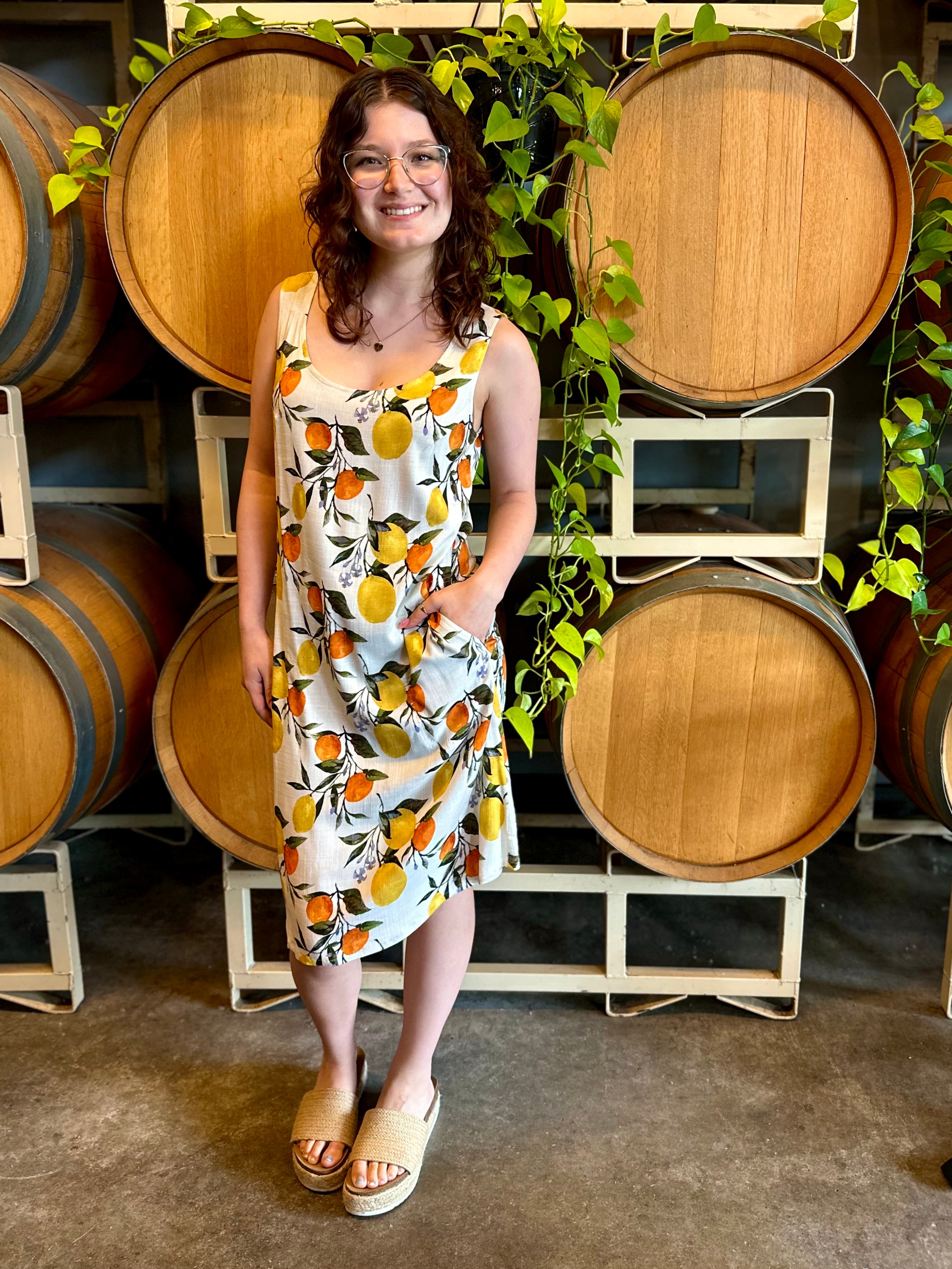 The Velma is one of our favourite summer dresses. This knee length dress has a slight A-line shape, scoop neckline and of course pockets!