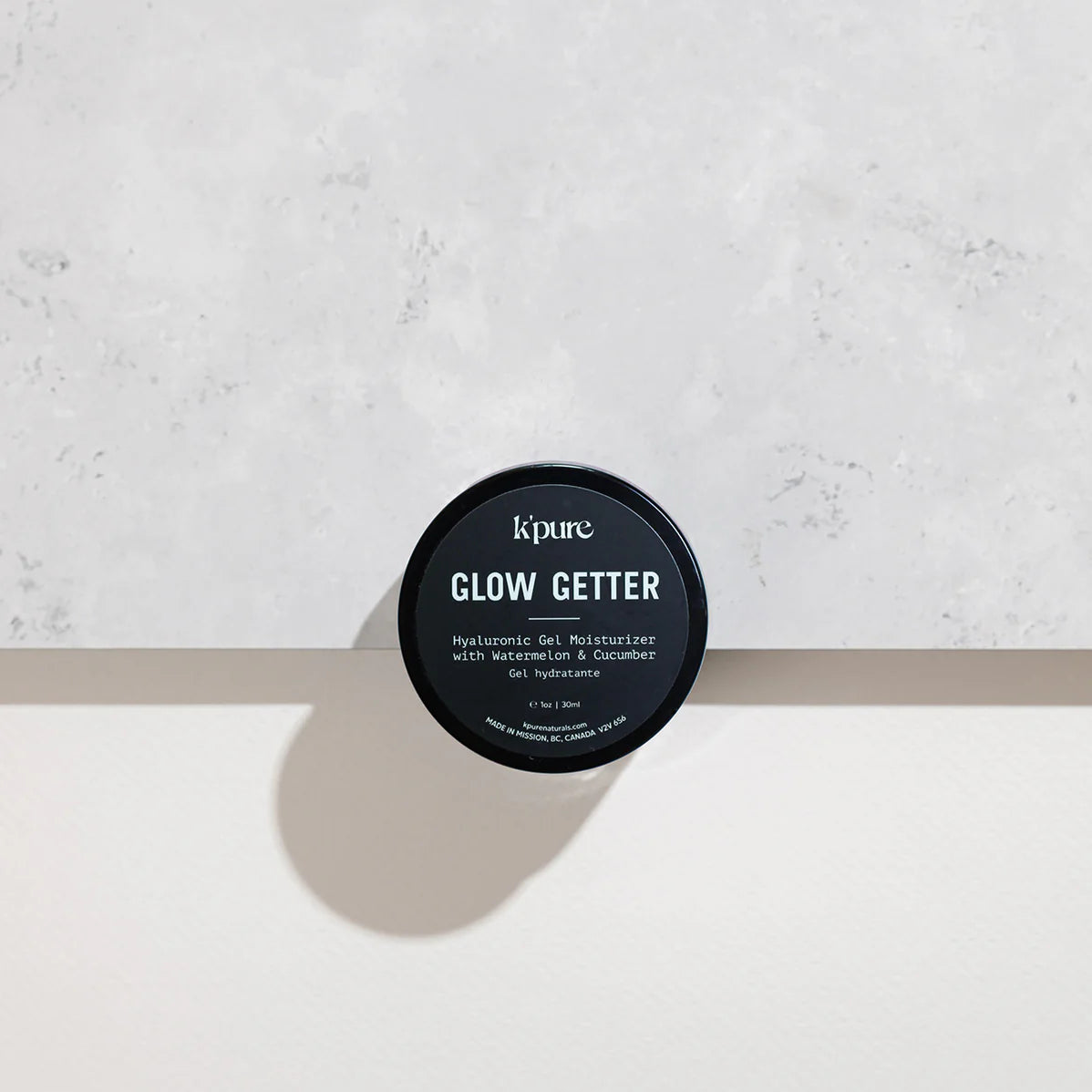Glow Getter is your daily dose of lightweight, dewy goodness—powered by hyaluronic acid, watermelon, and cucumber to plump, soothe, and deliver that fresh-faced glow without a hint of oily residue. It’s the kind of moisturizer that plays well with others, layers like a dream, and keeps your skin quenched from AM to PM.