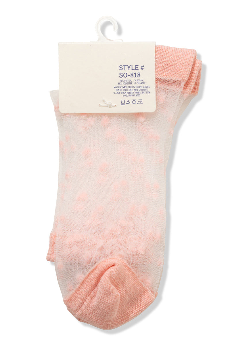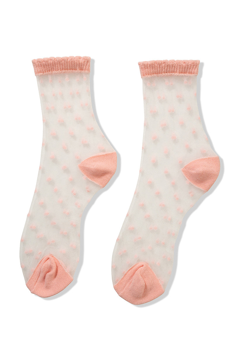 Sheer Polka Dot Mesh Lace Crew Socks | Pink